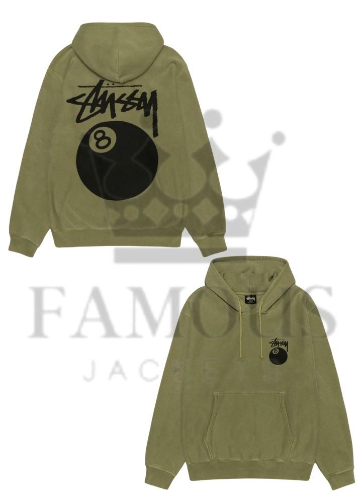My green stussy hoodie 8 ball design always gets compliments, it’s trendy, comfortable, and perfect for any casual streetwear outfit.
