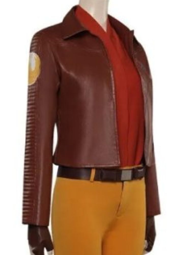 The 2023 Ahsoka-inspired Sabine Wren brown leather jacket is a striking piece that combines style and functionality. Crafted from high-quality real leather, this jacket is designed with a viscose inner lining for added comfort. It features a classic shirt-style collar and a secure zipper closure, giving it a timeless appeal. The rich brown color enhances its versatile look, making it a great addition to any wardrobe. With two front pockets and one inside, along with full-length sleeves, this jacket not only offers practicality but also pays homage to the iconic character’s bold fashion sense.
