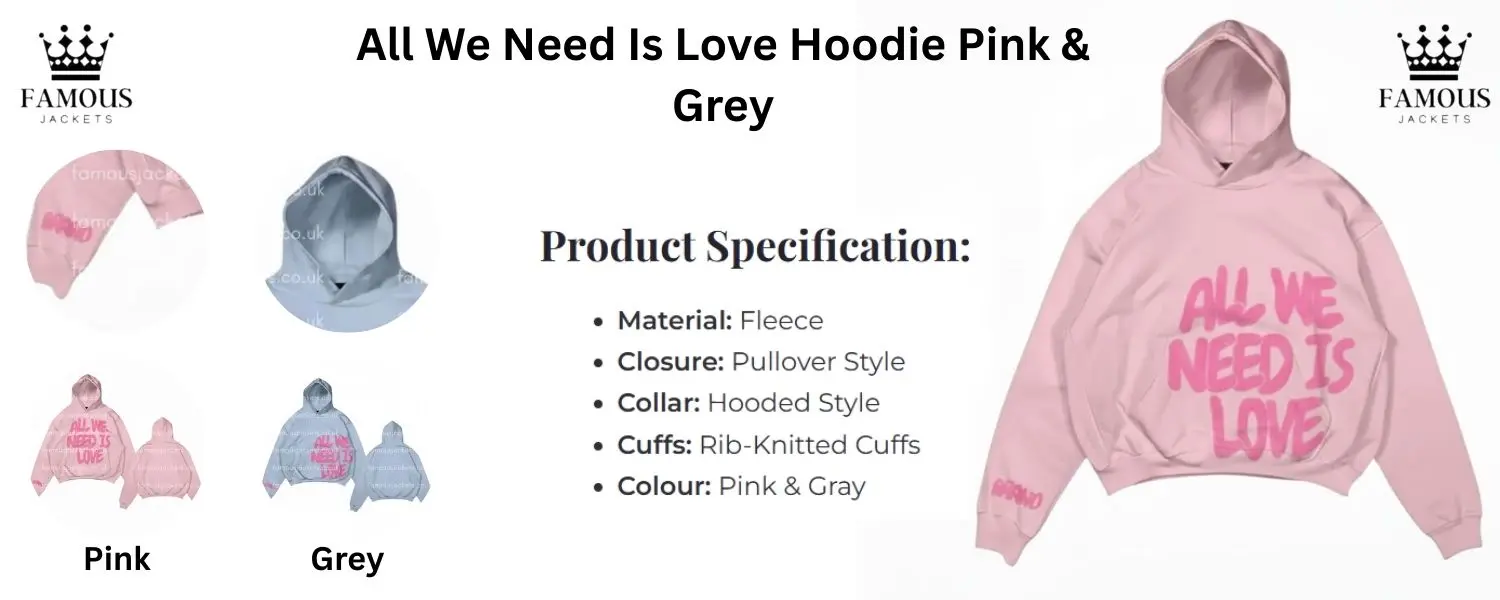 All We Need Is Love Oversized Hoodie is the best purchase this season, it feels luxurious on the skin, fits generously, and the pink and gray color combination looks fashionable and versatile for multiple occasions.