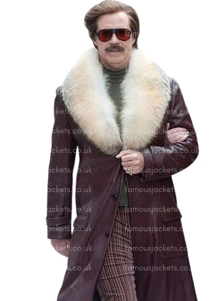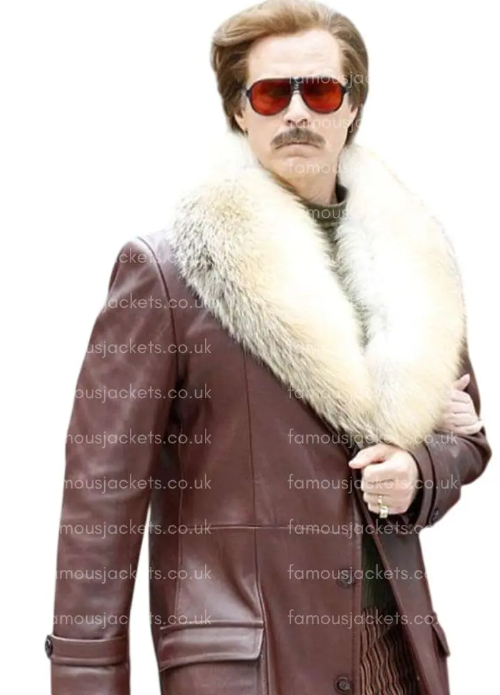 The Legend of Ron Burgundy continues in Anchorman 2 with Will Ferrell’s portrayal of Ron Burgundy which saw him don the iconic trench coat. In the film this Ron Burgundy Trench Coat was a hit with audiences for its rich brown color and plush shearling collar. Also known as the Anchorman 2 Ron Burgundy Coat, Will Ferrell Trench Coat or The Legend Continues Trench Coat this design is a mix of confidence, wit, and traditional male charm. For fans of the film and for those that appreciate great classic outerwear this Ron Burgundy Leather Coat is a must have for winter dates, casual nights out, theme events, or as a fashion statement.