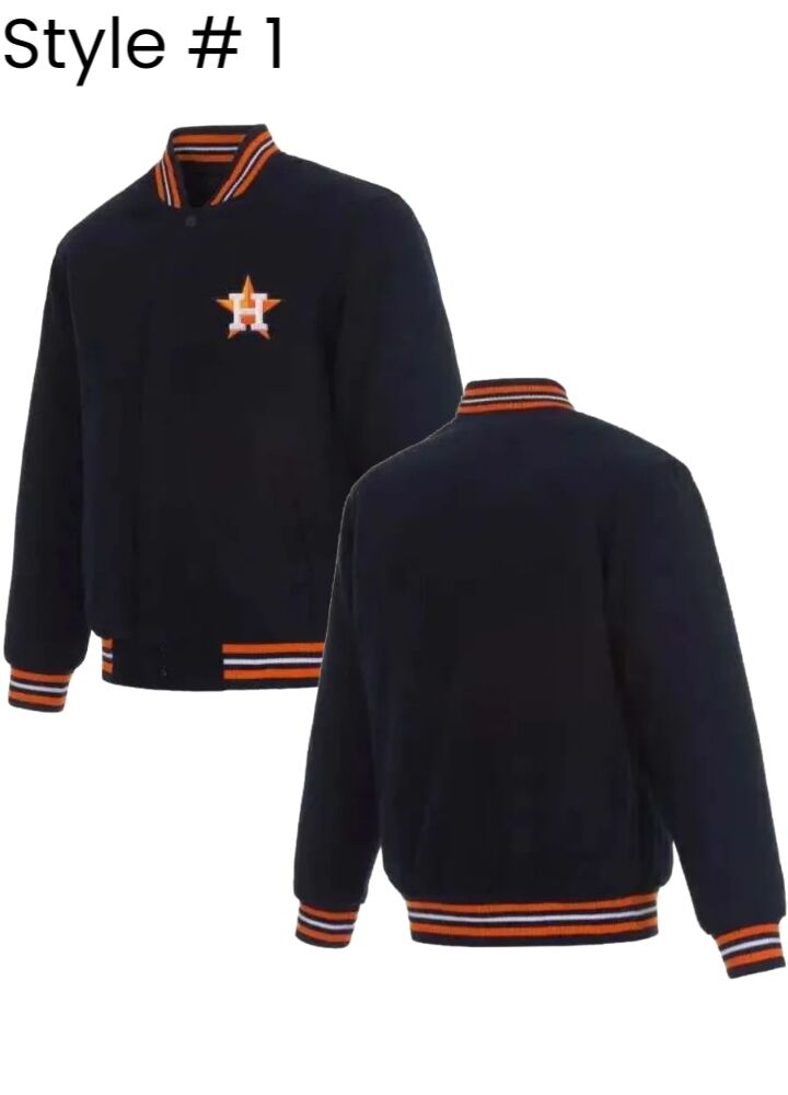 The Astros Houston jacket should be perfectly paired with style, comfort, and toughness within an attractive classic style done in high-quality wool blend material that ensures providing warmth and coziness to its wearers, while the smooth viscose inner lining adds comfort to them. The front closure is a great snap-tab button for functionality and style appeal, while the full-length sleeves give the jersey a modern look. The bomber jacket silhouette is completed with a ribbed knitted collar and cuffs held in place for fit and finish. So you have two outer pockets and two inner ones, so you can keep everything from your essential kit in one place, ample storage space that this jacket provides. Adding perfection to the timeless black color finish that’s to say, the Astros Houston Black Bomber Jacket is of the kind of piece that can easily match up with any wardrobe in creating a perfect fit for casual and semi-formal affairs.
