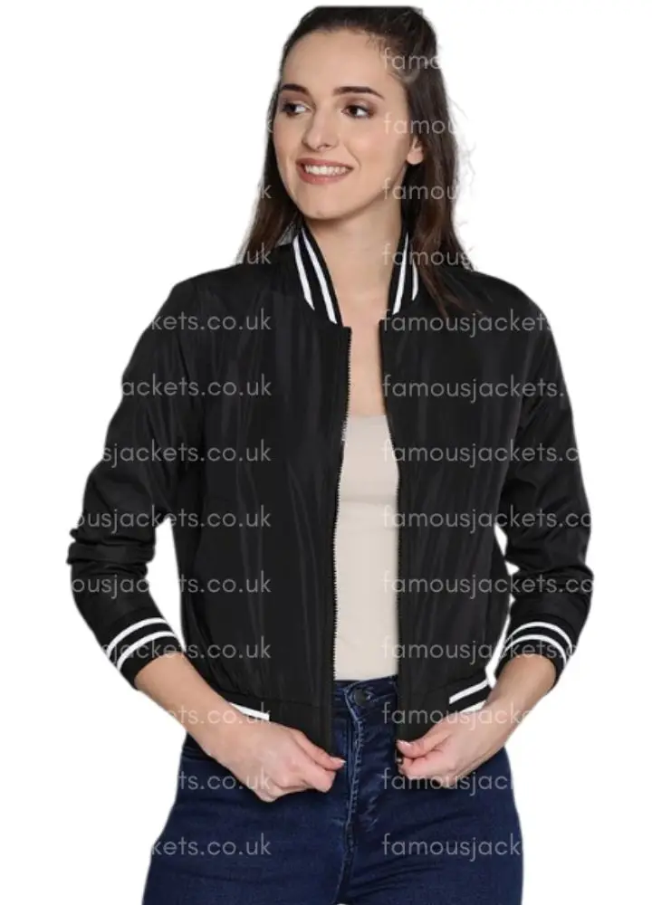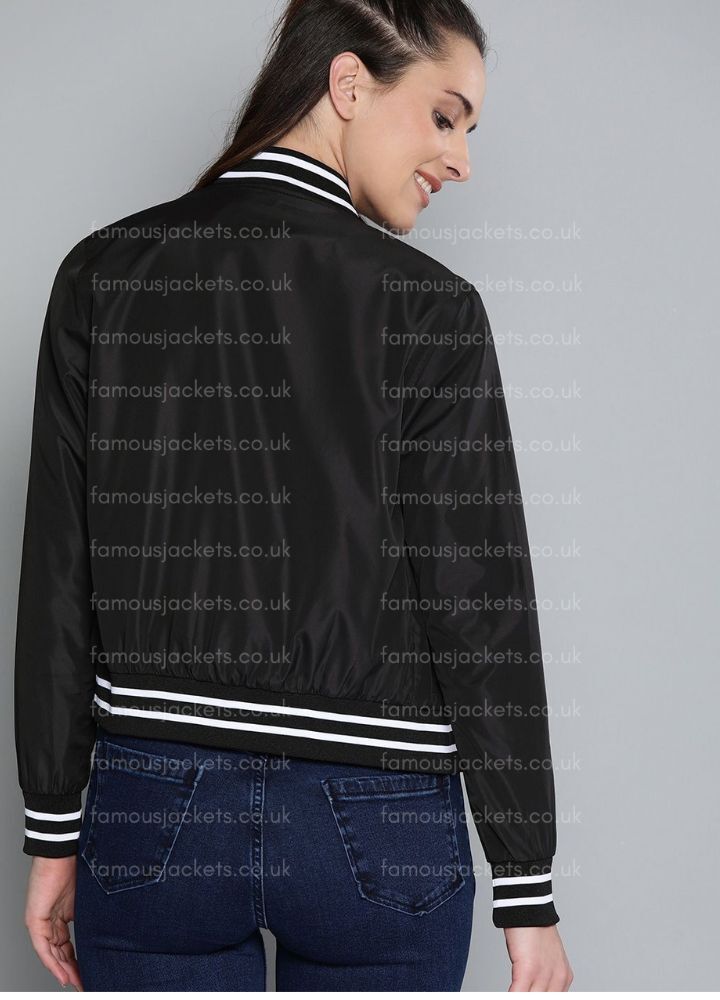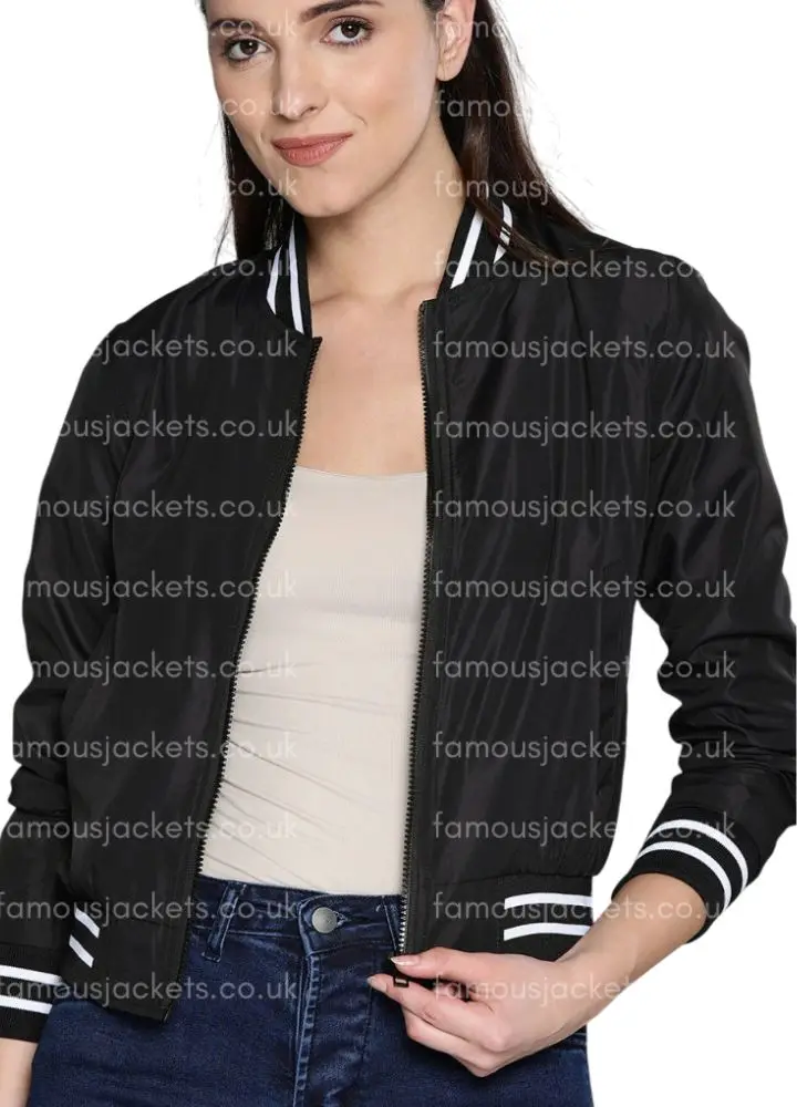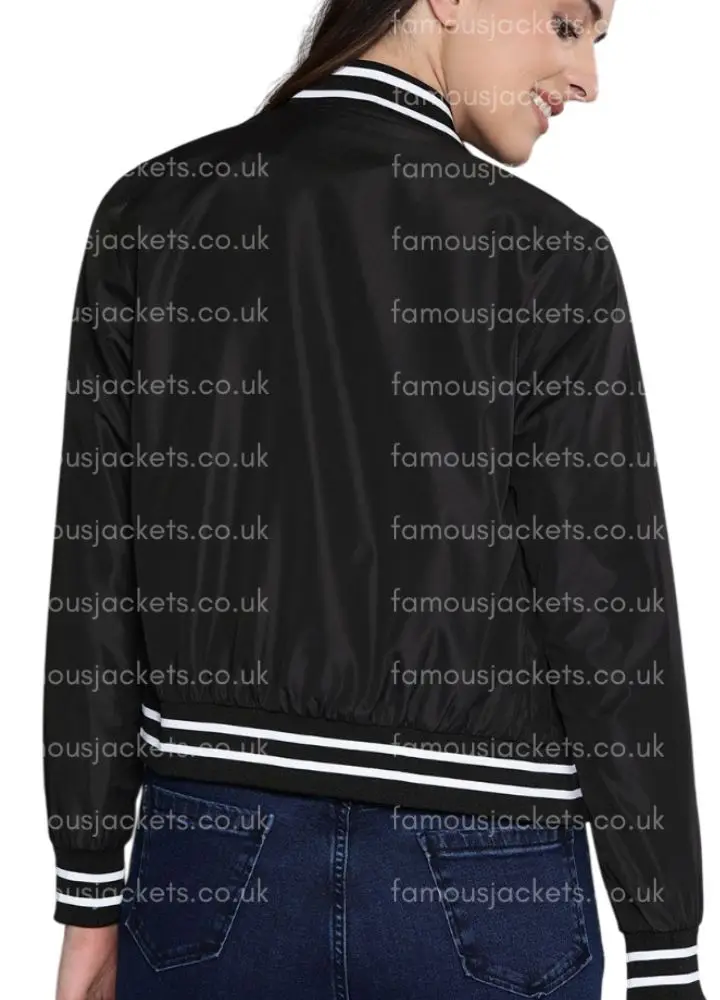 The material of this Women’s Black Bomber Jacket is very high quality, and the stitching detail is flawless and durable.