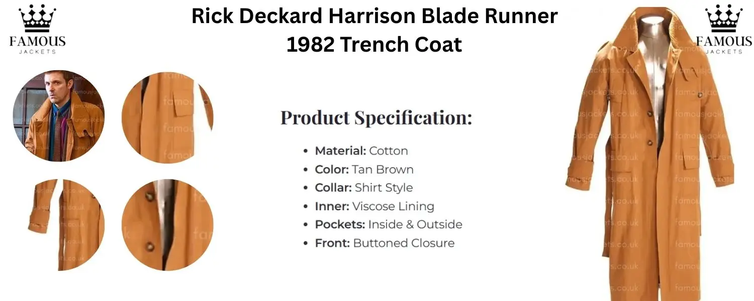 Rick Deckard Harrison Blade Runner 1982 Ford Replicant Hunter Cotton Trench Coat
