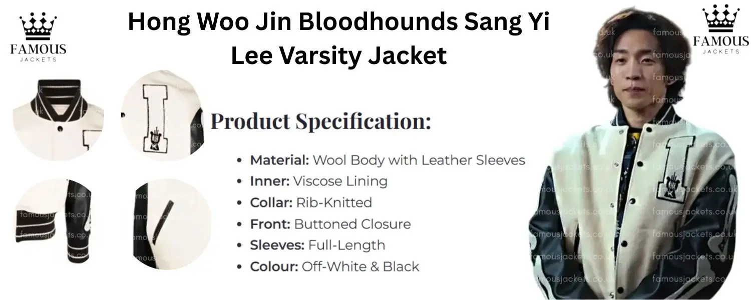 Adding to that, the consideration of the placement of the buttons on the front and the incorporation of buttoned closure is purely retro, indicating the boldness of the design while making it simple to put on and off the jacket. This is the kind of feature that means do not be afraid of aggregate modifiers. The off-white and black colors blended are classy making this piece an everyday piece. Leather trim full sleeves also add warmth, and they also bring in a daring fashion angle. Such exterior detailing is inspired by the fact that the jacket has a slight touch of a varsity jacket and this gives it a unique look. Being made of viscose, the inner lining also promotes comfort as well as preventing irritation when worn for long hours. It Is a quite functional aspect due to the fact that comfort has also been considered in the design of the Wear. Another sartorial delight offered by the Bloodhounds Hong Woo Jin Varsity Jacket is the confidence it instills in the wearer—by design it is more than just another piece of clothing. Adopt the confidence and sense of style all made possible by Sang Yi Lee and Hong Woo Jin without a doubt.