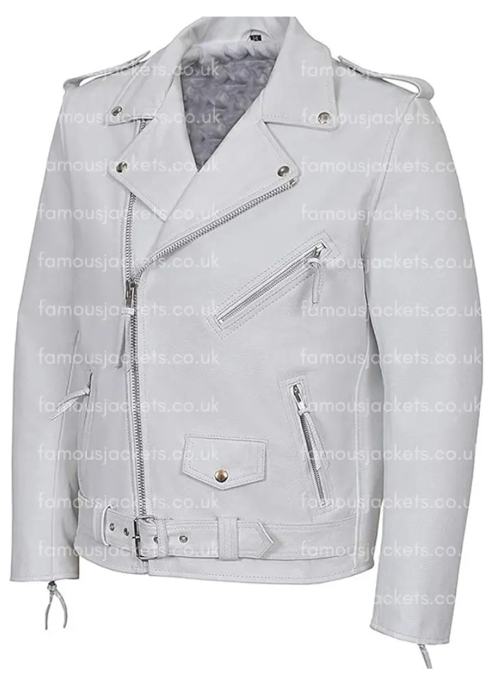 Men & Women White Marlon Brando Genuine Leather Biker Jacket