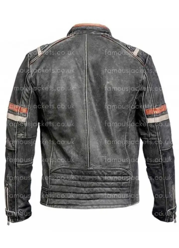 Retro Black Vintage Cafe Racer Motorcycle Distressed Leather Jacket