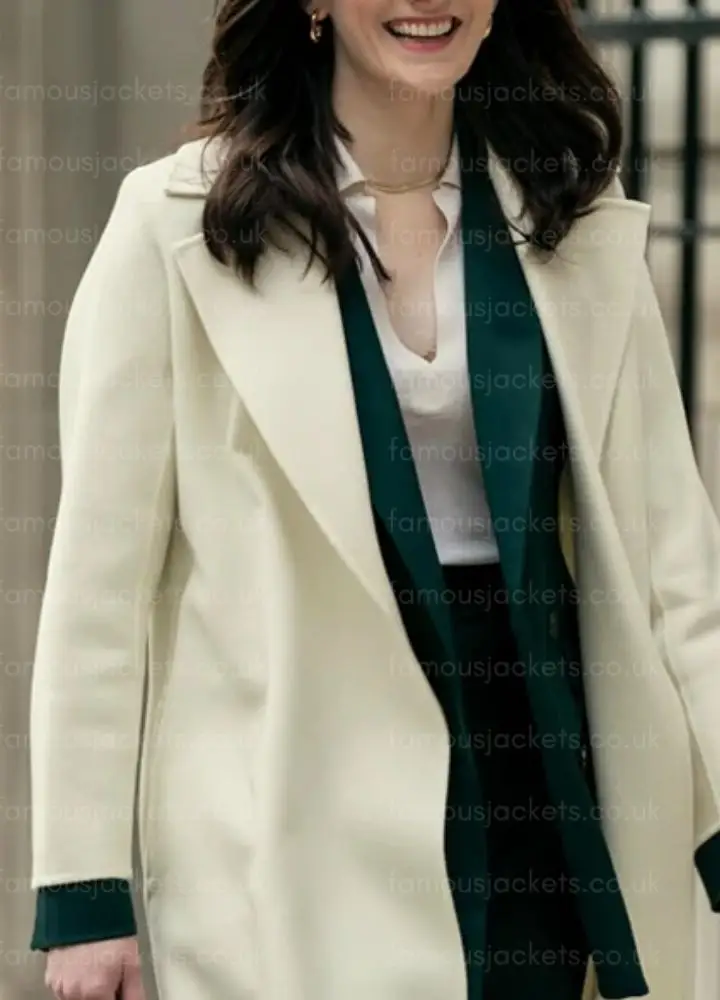 Kate Galvin TV Series You 2025 Charlotte Ritchie White Wool Coat