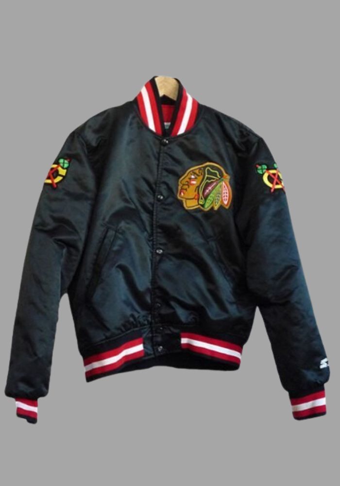 Meet The Chicago Blackhawks Satin Black Jacket the slim fit piece that will ensure that you don’t only look the part but feel it too. It comes in satin fabric quality as its exterior but with a soft viscose inner lining to provide you the utmost comfort wear. Fingerspace collar and cuffs give the shirt a traditional touch of rugby look and the button style flaps provide a perfect fit and comfort wear. The long sleeves and the all-black coloring add to the varsity aesthetic, making it a piece that can easily be incorporated into anyone’s wardrobe.