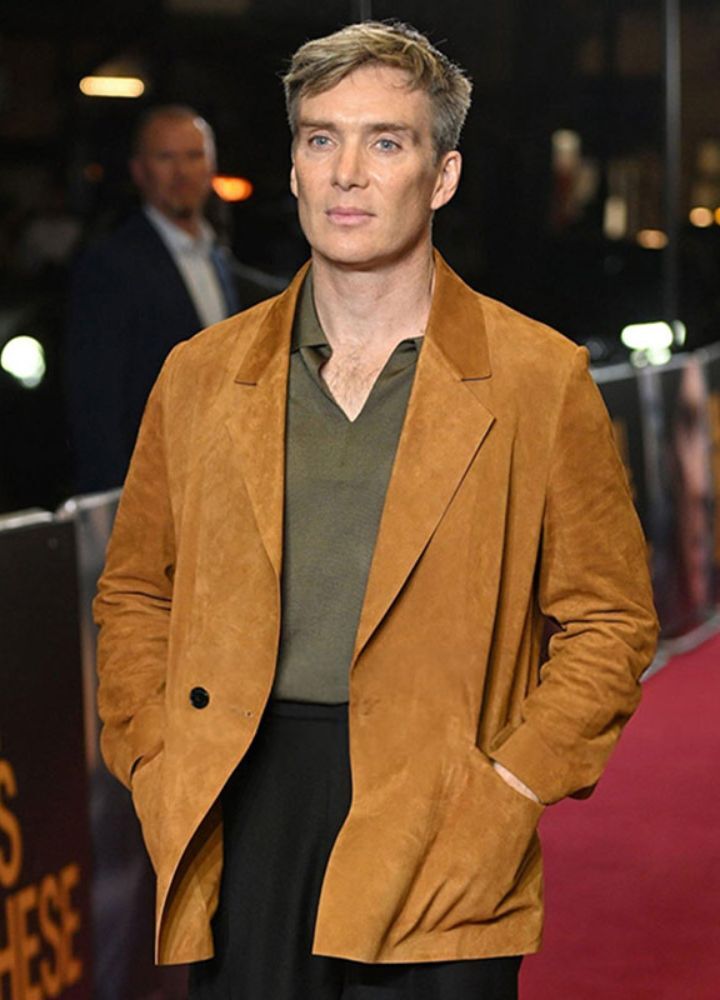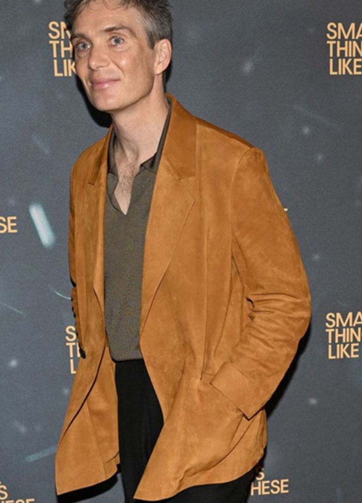 Cillian Murphy Premiere of Small Things Like These Suede Jacket Make a statement with this Cillian Murphy-inspired timeless style, seen at the London premiere. This modern yet elegant brown suede jacket comes in a relaxed fit and can easily be worn for any formal or casual occasion. The premium suede leather and soft viscose lining guarantee luxury and comfort simultaneously. A notch lapel collar with double-breasted closure adds class and sophistication. It is further functional with pockets for various applications. Upgrade your wardrobe with this versatile masterpiece.