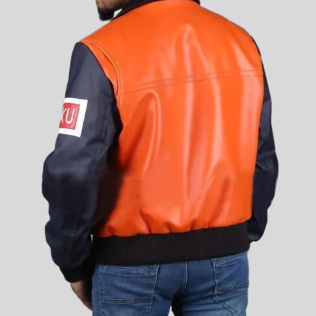 The Dragon Ball Z Goku 59 Orange Leather Jacket fits perfectly, and the quality is top-notch! Love the vibrant color.