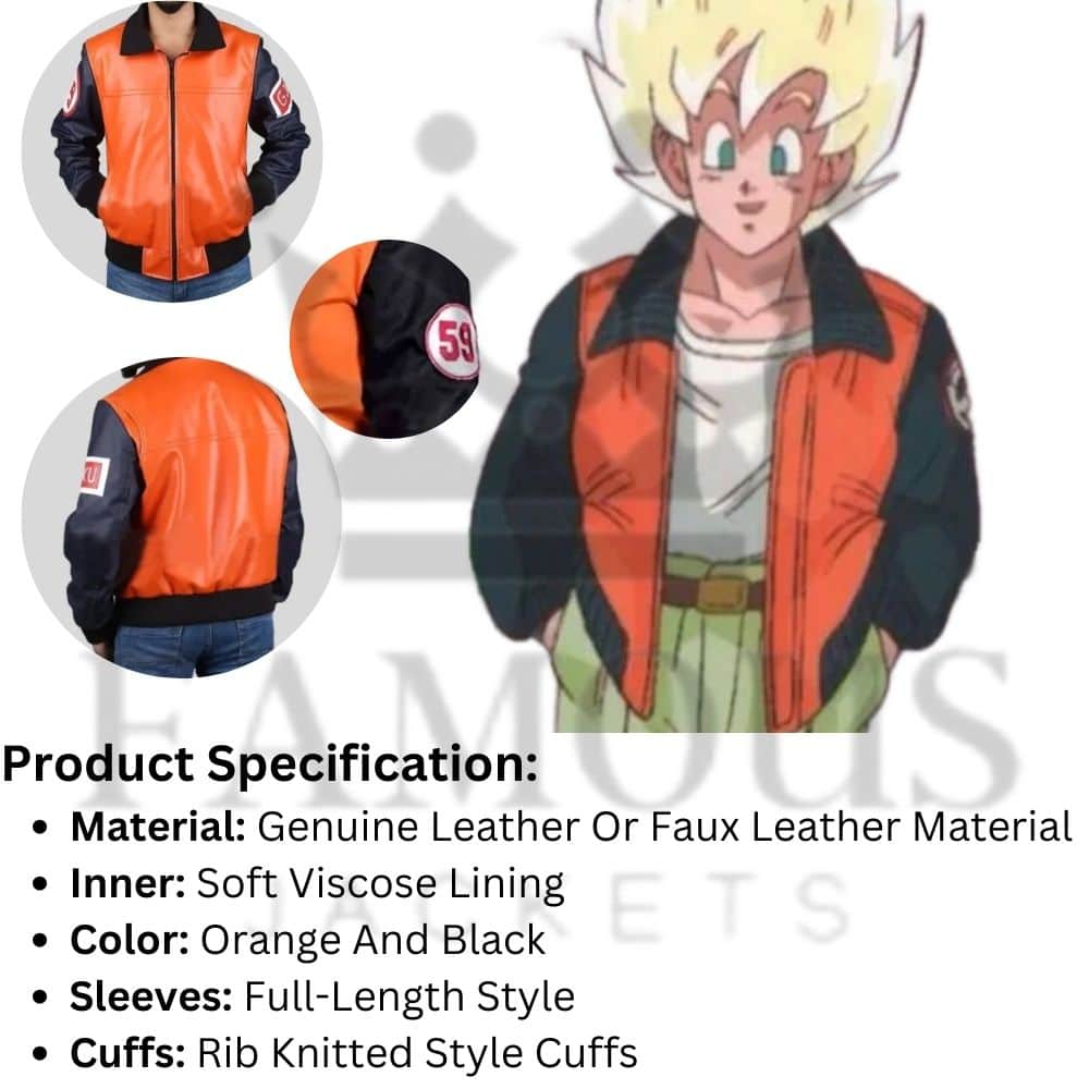 The jacket not only looks amazing but also came at the best price, making the Dragon Ball Z Goku 59 Orange Leather Jacket a total steal.