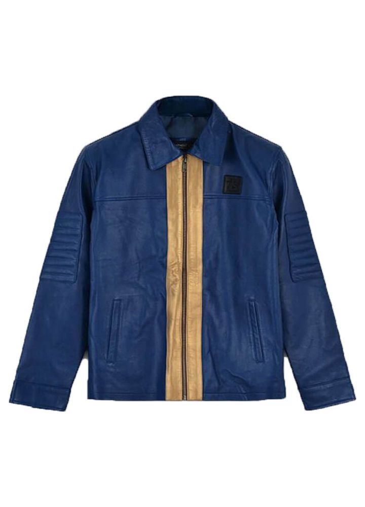 Inspired by the iconic Fallout universe, the Vault 76 Blue Jacket takes style and durability to new heights on your wardrobe. Whether it be faux or real leather, this bold blue color brings out this rugged yet beautiful design for both casual comfort and practical usage. Front zipper closure, full-length sleeve, and zipper and buttoned cuff give it comfort and practice while carrying the soft feeling viscous inner lining within. This has a bold stand-up collar, which can fit almost any Fallout fan looking forward to making a statement.