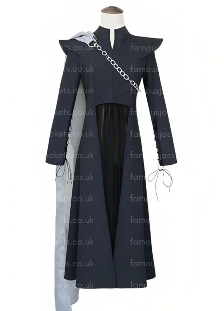 This Emilia Clarke Wool Trench Coat as Game of Thrones’ Daenerys Targaryen is beautifully crafted out of quality wool to keep one warm and in style. A viscose inner lining creates a comfortable smoothness on the inner part for better fitting. This lovely grey-colored coat comes with an exquisite design to match up well with all outfits for versatile and classic appearances. Adding to the classic touch of boldness is the erect collar design, so one’s style won’t be overpowered. Moreover, a zipper on the backside makes this item easy to put on and remove. There are full sleeves attached to ensure one gets warmer clothing for cooler seasons.