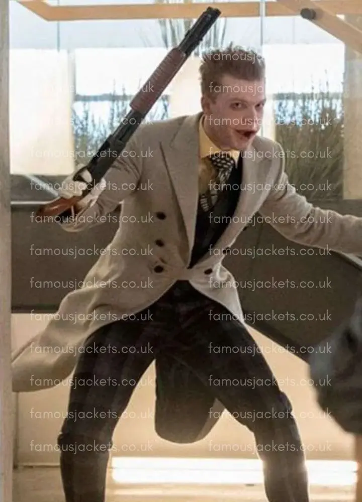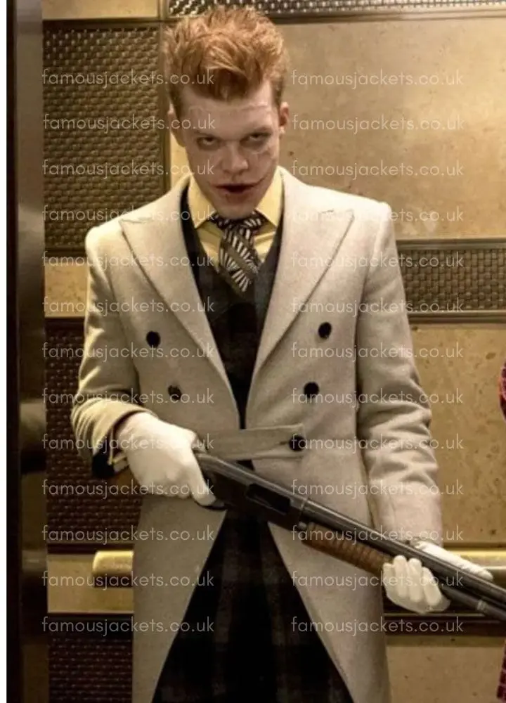 Step into the world of the hit TV series Gotham which tells the story of the rise of the city’s most iconic baddies. In it we see the outstanding character of Jerome Valeska brought to life by actor Cameron Monaghan who does the role justice. That character which is a mix of madness and style is a hit with fans and fashion followers. Now you can add a bit of that gothic flair to your own wardrobe with the introduction of the Gotham Cameron Monaghan Jerome Valeska Trench Coat, which is as true to the screen as it is to what you would wear out. This white and grey wool coat which is a dead ringer for what you see on the show also is very wearable for any casual or semi formal get together. To wear to a cos play event, a Halloween bash or just to liven up your look a bit this Wool Coat is your go to piece. It brings a piece of that gritty, stylish world of Gotham to you.