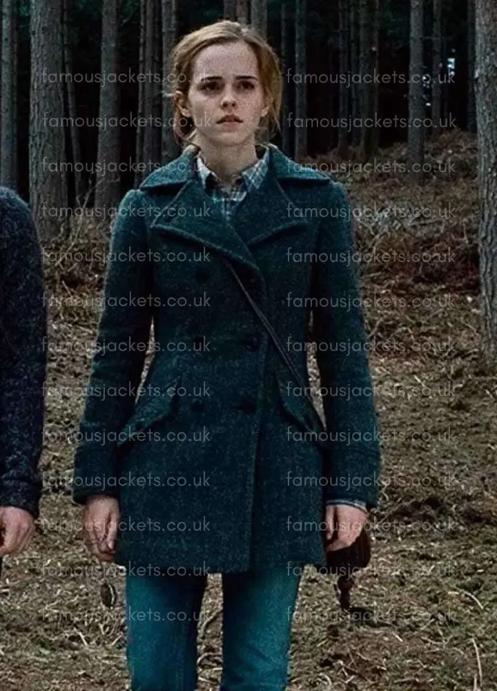 A: In Harry Potter and the Deathly Hallows Hermione Granger donned this great grey wool coat which she wore in many of the key outdoor scenes as they sought out the Horcruxes, which also made it one of her most iconic styles from the series.