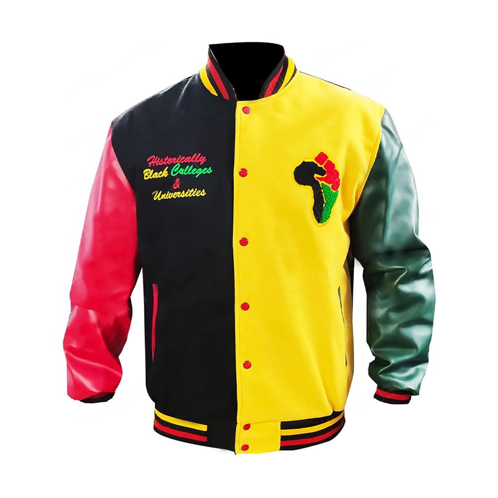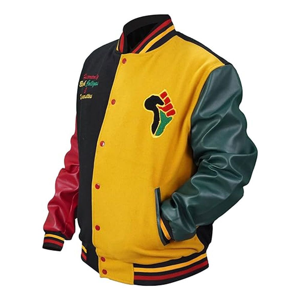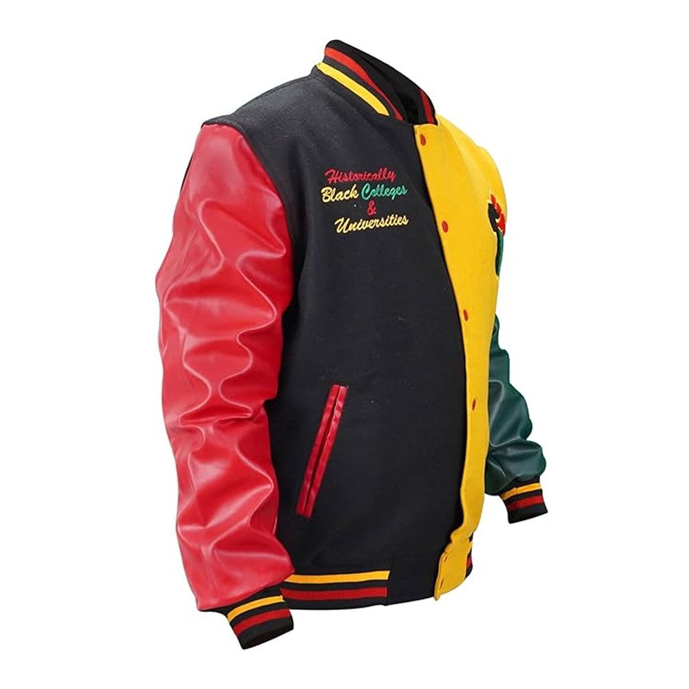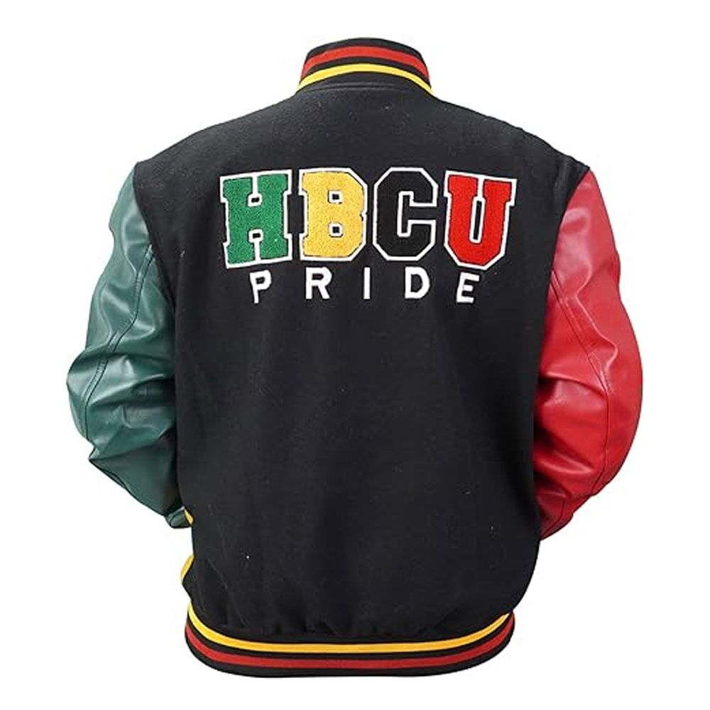 The HBCU Pride Letterman Jacket is a versatile piece that can be dressed up or down to suit different occasions. For a casual look, pair it with jeans and a simple white tee, and complete the outfit with sneakers. This combination offers a laid-back and trendy appearance, perfect for hanging out with friends or running errands. For a more sophisticated style, wear the jacket over a button-down shirt, chinos, and leather boots. Add a belt to complete the look, and you’re ready for a night out or a semi-formal gathering. This jacket is not just a fashion statement; it’s a symbol of pride and recognition of the rich history of HBCUs. By incorporating the combination of wool and leather, it successfully merges warmth, style, and a touch of heritage into a single piece of outerwear that’s suitable for various occasions.
