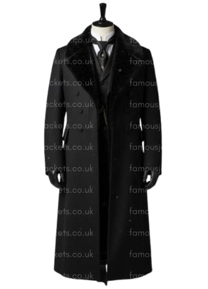 House of Guinness S01 Anthony Boyle Arthur Guinness Coat is pure perfection. The wool texture is soft, and the black color makes it look sophisticated.