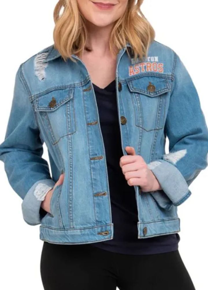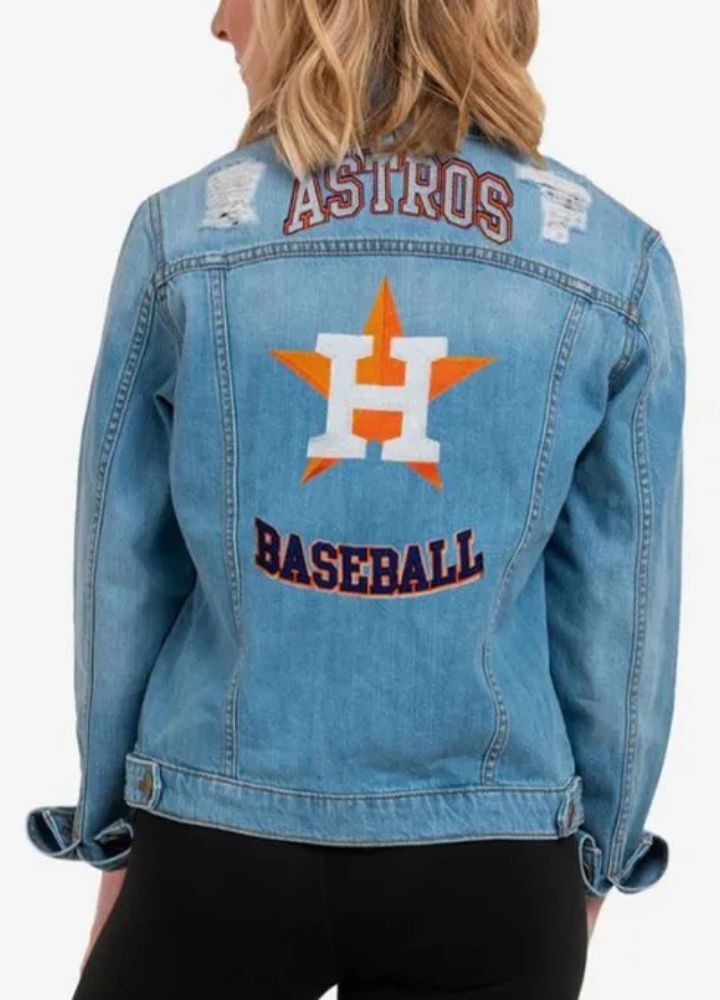 To keep your Houston Astros Denim Jacket looking fresh, machine wash it in cold water with like colors. Do not use bleach or harsh detergents to prevent fabric integrity from breaking down. Hang it to dry or tumble dry on a low setting. Do not wring the jacket and keep it in a cool, dry place.
