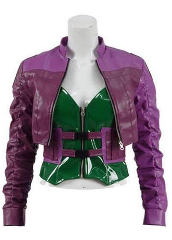 This beautiful Purple Jacket inspires the look of the well-known character Harley Quinn, voiced by Tara Strong from Injustice 2, with edgy touches at perfect comfort. This beautiful garment is made from premium faux or real leather and comprises a soft rayon inner lining and offers a stand-up collar, YKK zipper closure, and sleek full-length sleeves with open hem cuffs. Designed for the Harley Quinn fanatic and fashion lover, this is one jacket that will give any cosplay a character as well as class, while it’ll also stand out just with daily wear because its color is that bright vibrant purple.