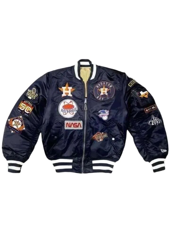 Enter the Houston Astros Jacket, a fashion-proud and versatile tribute to the team’s iconic victories. Made out of excellent satin fabric with a sleek and smooth surface that catches the attention of everyone you pass by, comfort is assured by its soft viscose inner lining. The rib-knitted collar and long sleeves with ribbed cuffs ensure fit coziness. A navy blue-colored jacket is sure to be stylish with the inclusion of easy zipper closure on the front, with two waist pockets on its outer side and one inner pocket to safely store essentials. Body-colored with Houston-inspired printed patches brings out the theme of the World Series and Kate Upton, who caught the attention of fans for the Houston team. This will be the perfect casual or game-day jacket, perfect as a show of Astros spirit or an oversized fashion statement to wear with your favorite outfit.