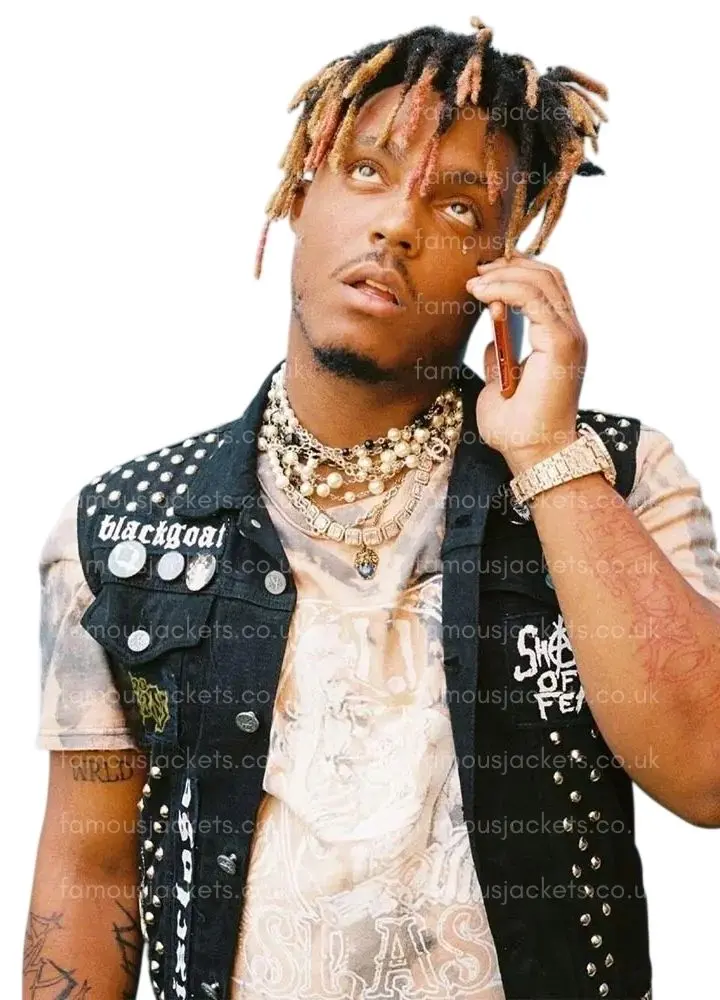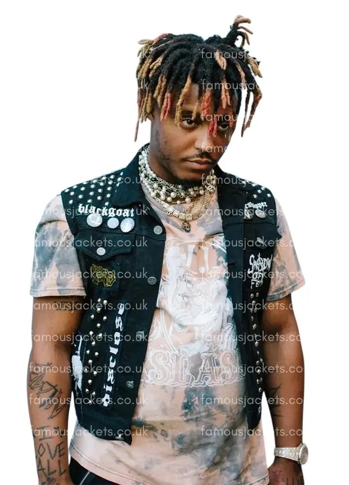 Celebrate the legacy of Juice WRLD with the Tributes in Black Vest. This piece is inspired by the time of his hit “Legends Never Die” which saw him at the peak of his game and also the rebellious and bold style that was very much a part of his identity. For the fan that wants to show support for his music this black denim vest is a statement at concerts, music festivals, or in a casual street wear setting. It looks great with ripped jeans or layered over hoodies and in doing so brings out the very unique fashion sense of Juice WRLD.