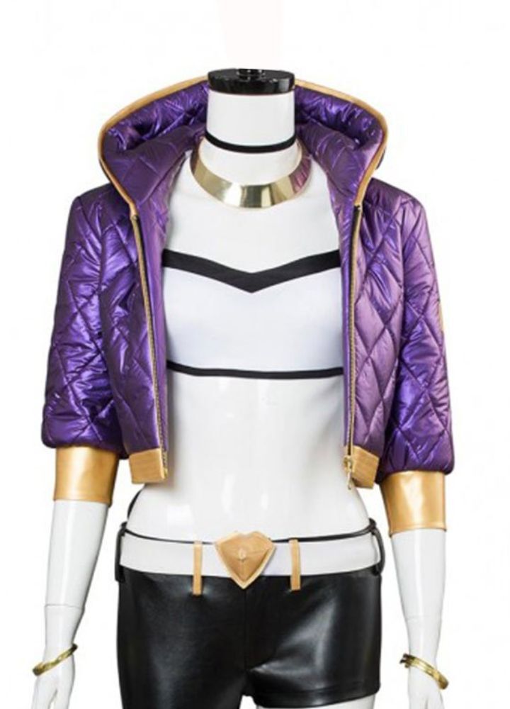 Any fan or fashion freak should own this League of Legends Akali Leather Jacket. Inspired by the edgy, iconic style of Akali, this jacket has bold designs with modern cosplay flair. From the real or faux leather high-quality material, the striking purple hue with gold accents, cropped design, to the hoodie collar, you’ll be sure to stand out from the rest. Detailed Features