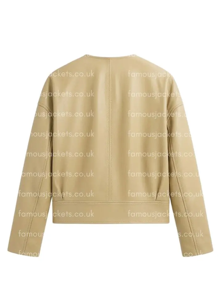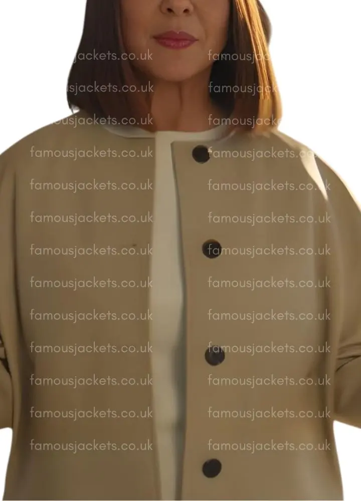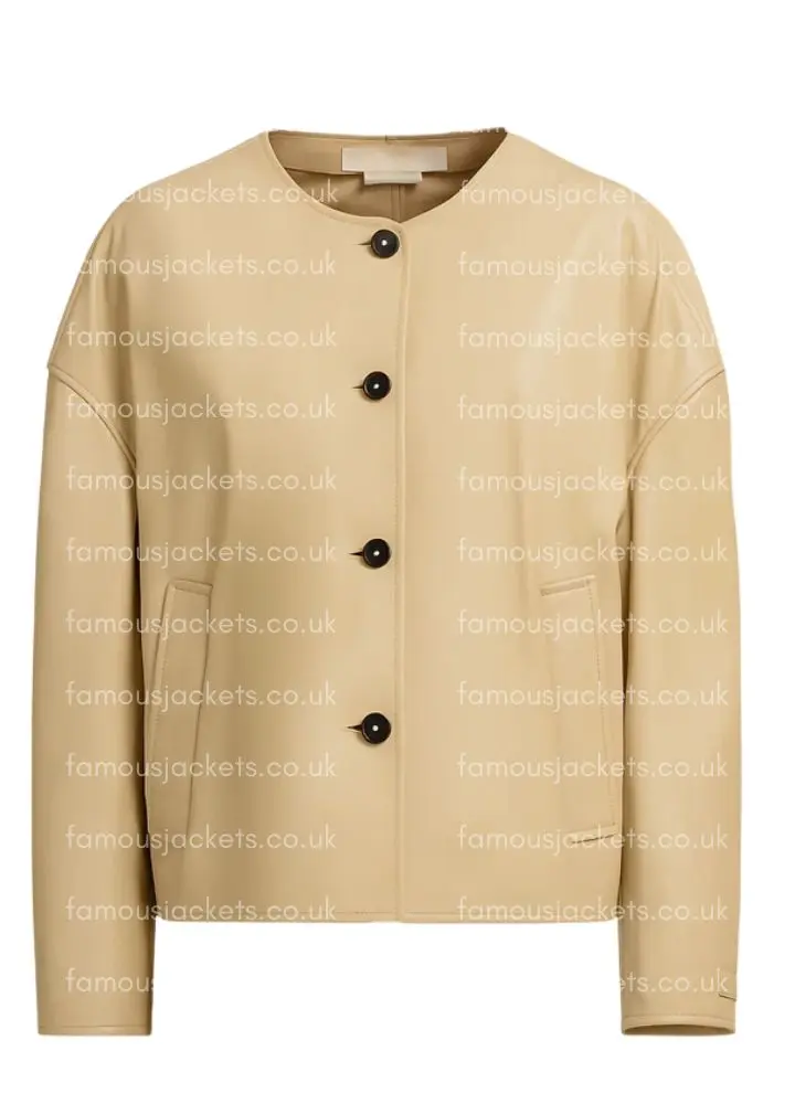 Crafted from a mix of faux and real leather this Maya Rudolph Molly Novak Beige Jacket which in turn gives a luxurious feel without breaking from the style. We have soft viscose lining that gives you maximum comfort, also the round neck collar and button front detail which we see as classic and almost timeless. Full length sleeves and open hem cuffs are what we see as design elements that bring in that free range of motion and a very relaxed fit to the piece. That elegant beige color which is so presentable goes with anything which in turn makes it great for the casual or semi formal wear. For the show’s fans and fashion lovers this Molly Novak Beige Jacket is a hit it brings that screen to stage wear ability.