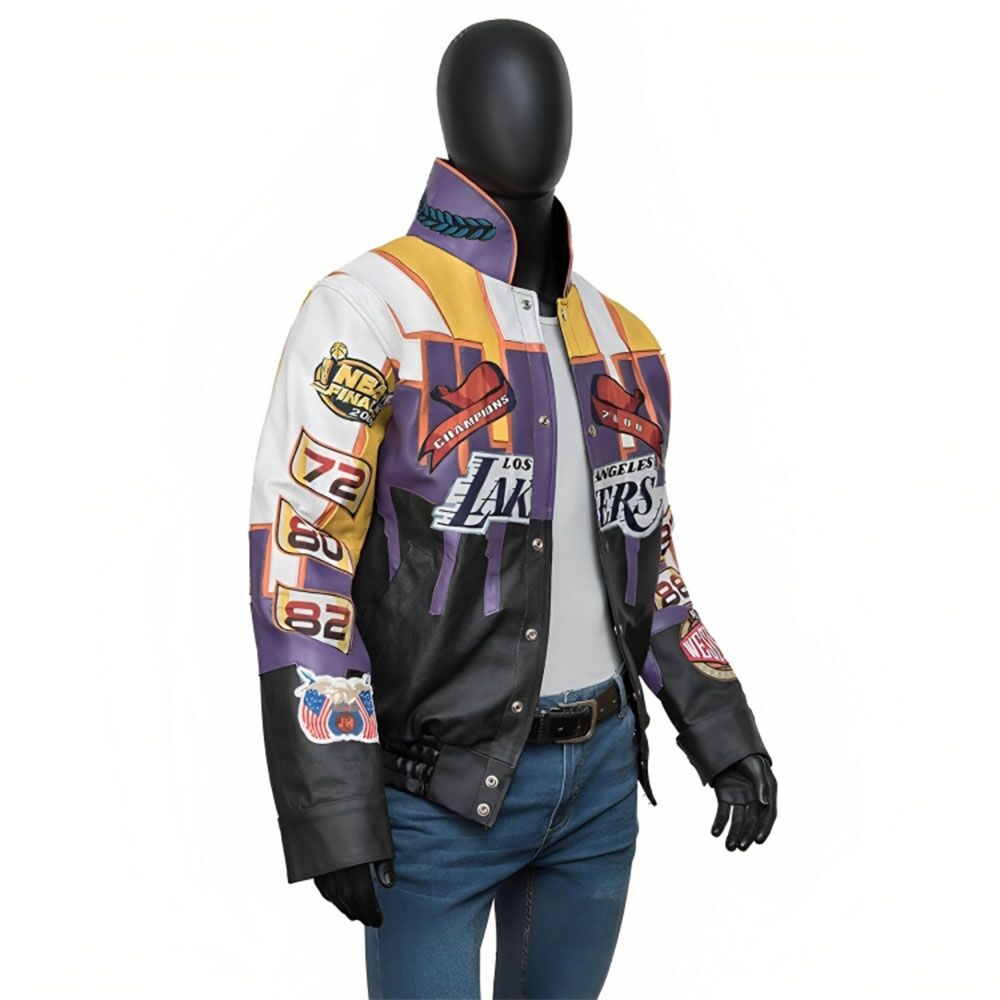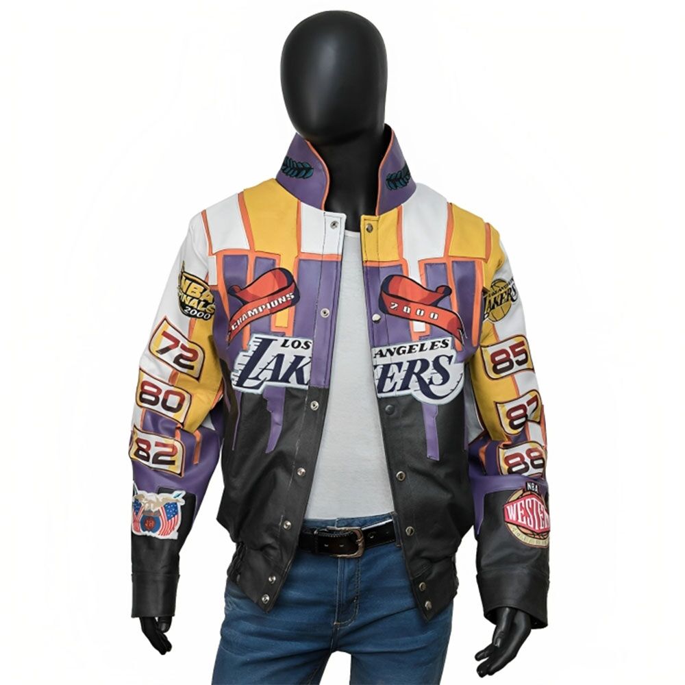 The Los Angeles Lakers Jacket is a distinctive item of clothing due to its numerous distinctive features. The distinctive opposing color scheme with several colors is the first aspect of the cultural character of basketball. On the contrary hand, the Lakers Jacket's attractiveness is enhanced by its bomber jacket design.Using this Los Angeles Lakers Jeff Hamilton 2000 NBA Championship Leather outerwear, which is made of premium fake leather goods, will make you appear to be a basketball player. The gentle on the skin inner viscose lining covering keeps you comfy and cosy in chilly conditions. It also has a standing collar with buttons and a fastening with a zip for the utmost in casual elegance.