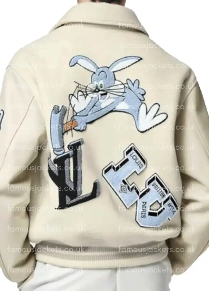 Step into the fashion that is inspired by the greats of the silver screen with the Bunny Cream Varsity Jacket, which also goes by the names of L.V. Bunny Varsity Jacket and Louis Vuitton’s Bugs Bunny Varsity Jacket. This excellent piece, which draws from the doings of animated film characters past and present, gives fans and fashion fans a mix of style and nostalgia. Perfect for casual days out, premiere events, or even theme parties, this jacket allows you to put out a put-together, animated look at the same time as you add luxury and versatility to your wardrobe.