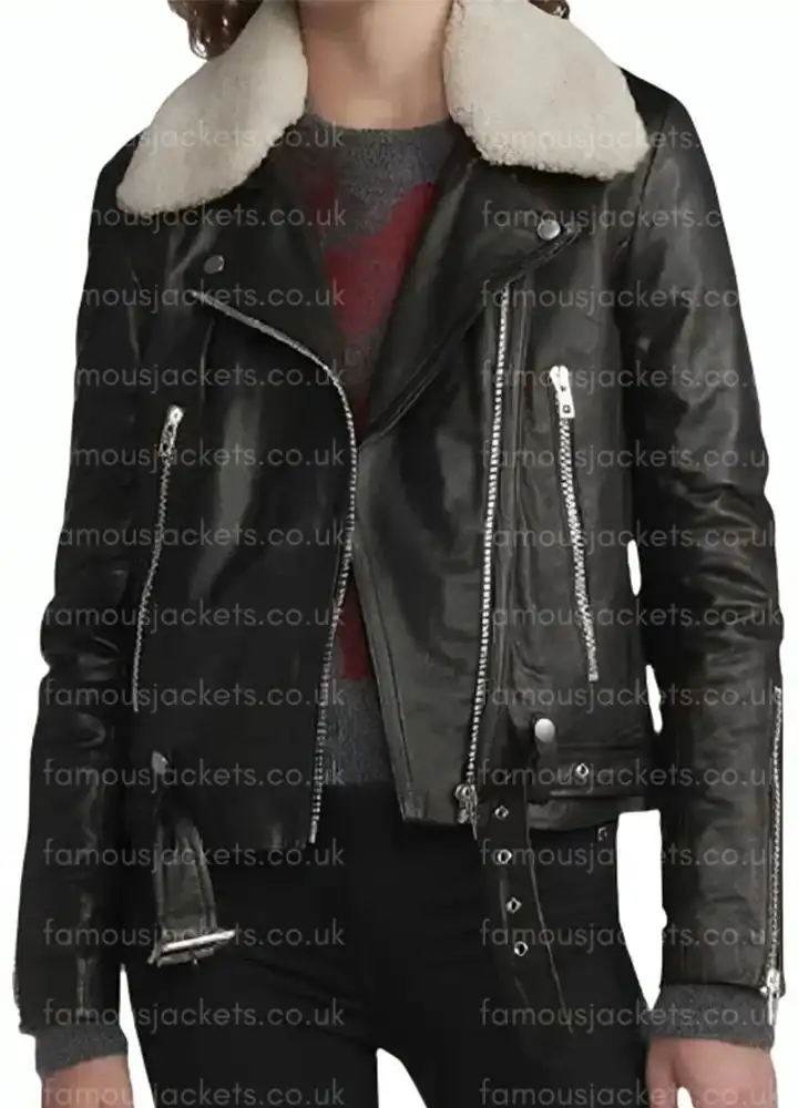 Love Life Zoe Chao Motorcycle Black Shearling Leather Jacket