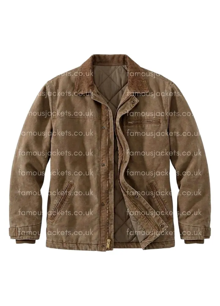 From premium cotton and lined with soft viscose the Cotton Jacket is at once durable and comfortable. It has a zip with a snap tab closure for secure wear, a snap tab collar, and open hem cuffs which give it a loose fit. Functional pockets on the chest and side waist add to its practicality without breaking from style. The rich brown color which it sports is very versatile for everyday wear or cos play events. Light in weight yet strong this Frank Sheehan Jacket is for the fan that wants to put out there support for Mare of Easttown, David Denman, or Frank Sheehan in a stylish way.