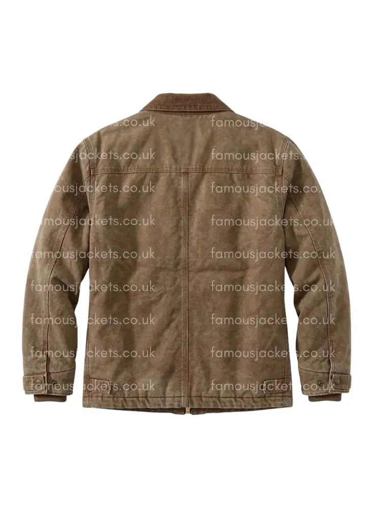 To preserve the jacket’s premium quality have it hand washed or put in a gentle machine cycle with cold water. Steer clear of tough detergents which will damage the cotton fabric and cause color to fade. Dry in the shade on a line to maintain the jacket’s structure and softness of the viscose lining. Use a damp cloth to wipe down the jacket for regular cleaning. Proper care will see your Frank Sheehan Brown Jacket look as good as new at which point you can watch it in Mare of Easttown, wear it to cos play events, or out for a casual walk.
