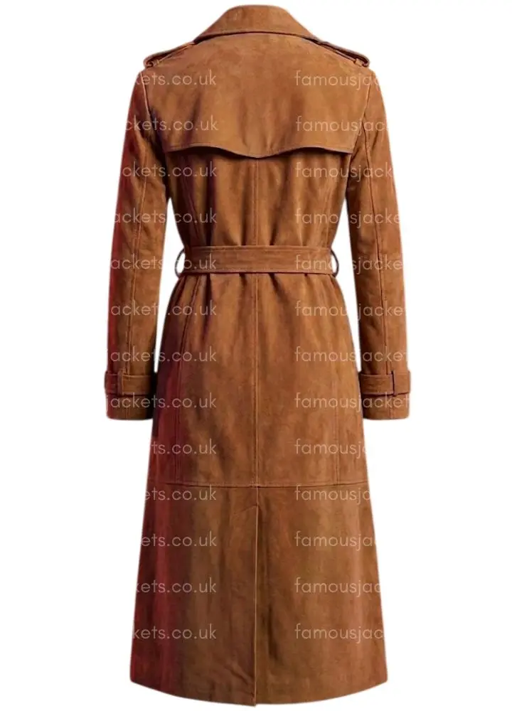 Daredevil Born Again by Margarita Levieva which is designed in high quality suede for that premium and stylish look. We also have a soft viscose lining which improves the comfort of the piece and makes it easy to throw on for the whole day. The front has a double breasted design which is both button up and belted which in turn gives a very structured and elegant fit. Classic lapel collar which is a nod to the classic looks of the past and brown color which is a great go to for any wardrobe. Also we have put in two front functional pockets and one in the back for your convenience. And to top it off full length sleeves which give it a modern and sleek look which in return make this piece appropriate for many different events.