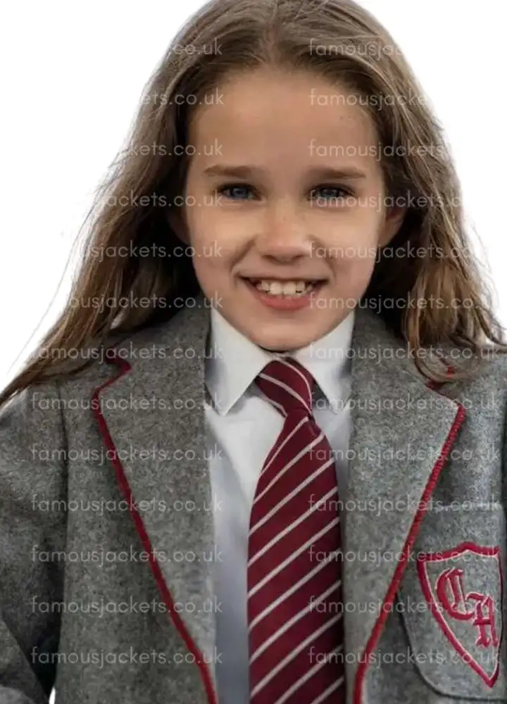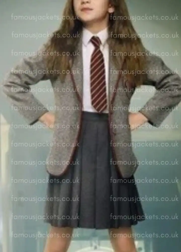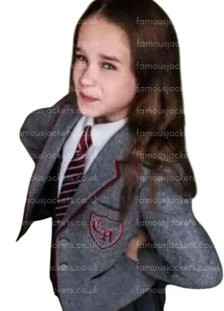 Presenting Matilda 2022 Alisha Weir Grey Blazer, which she wore as Matilda Wormwood, and it is inspired by the iconic look from the beloved film Matilda the Musical. This gray blazer worn by Alisha Weir as Matilda Wormwood is a fashion statement for fans of the movie and, at the same time, must-have apparel for fashion enthusiasts too. It is timeless, stylish and offers comfort as well as warmth because it is made of high-quality wool with a soft inner lining. The schoolwear-inspired piece looks beautiful due to its lapel collar and buttoned closure. This blazer can be worn in daily life or used for cosplay, which instantly adds charm to ensembles.