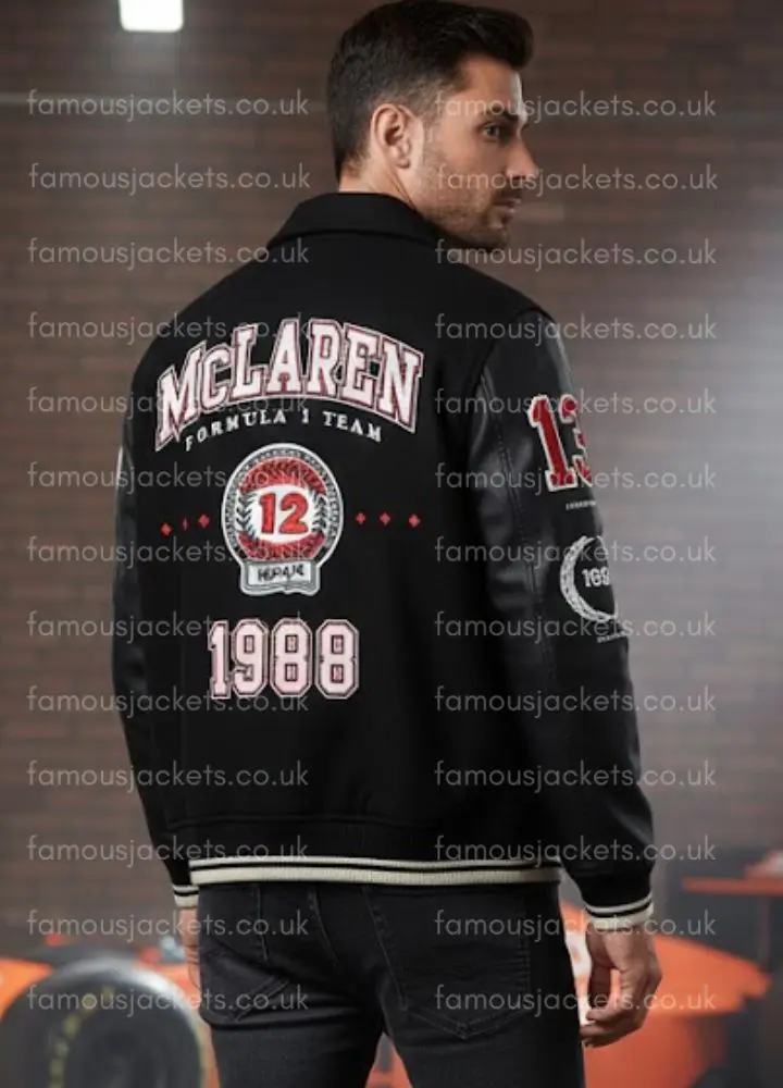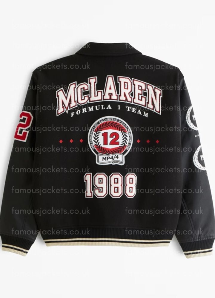 Formula 1 Team Mclaren Racing Black Varsity Bomber Jacket for Men and Women