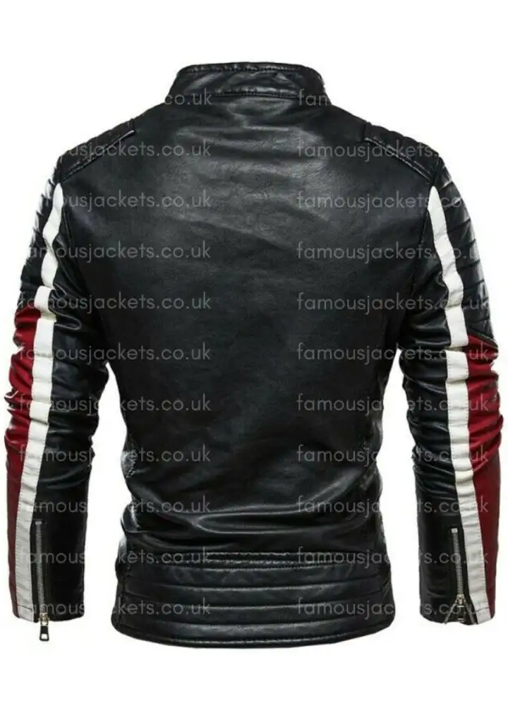 Black White and Red Slim-Fit Leather Biker Jacket For Men