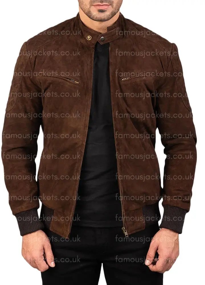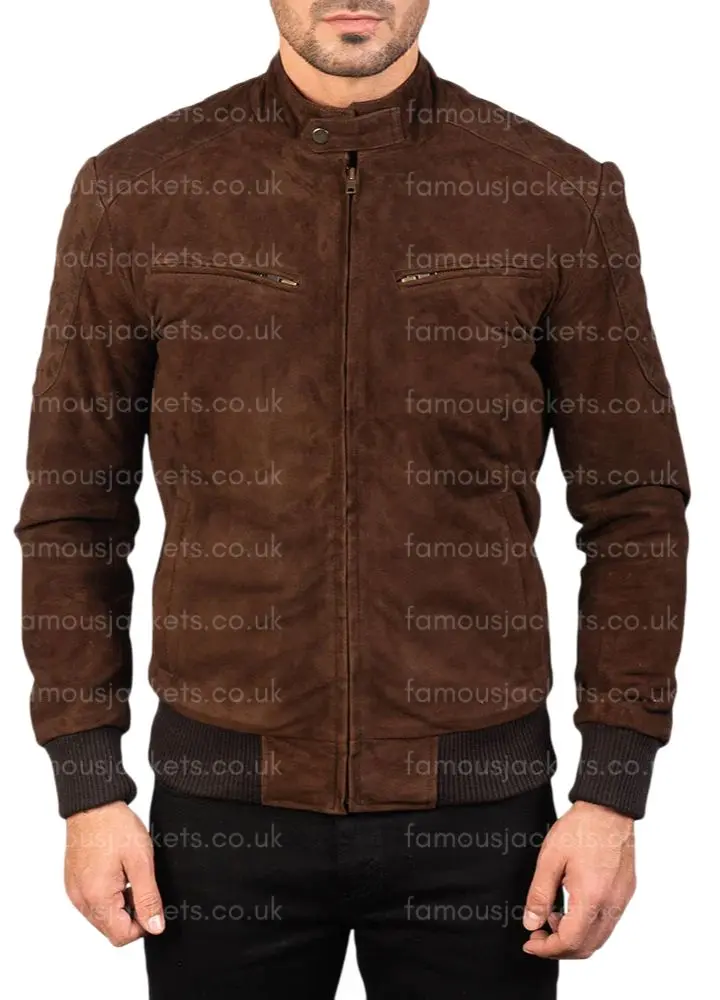 Brown Suede Bomber Jacket for Men