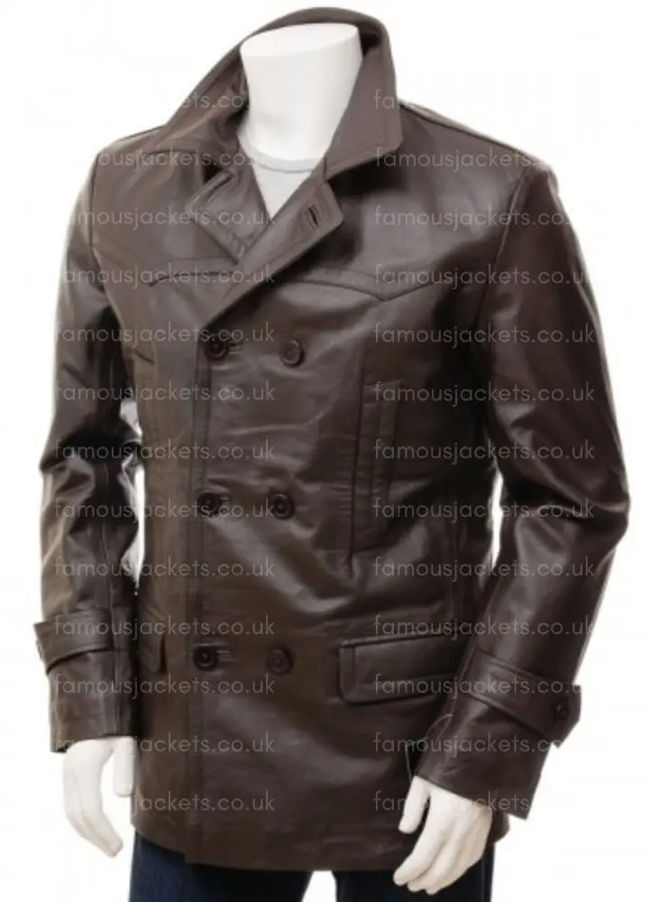 Step in to the world of film noir and modern action with the Mens Double Breasted Dark Brown Coat that draws from classic Hollywood and today’s top male action heroes. This Mens Double Breasted coat is a study in rugged grace and style as seen on the big screen a must have for men that play with the idea of fashion and function. Whether you are at a black tie affair, out for the night, or just looking to step up your everyday wear this Mens Double Breasted Leather Coat is your go to. With its 3/4 length cut and rich brown color which channels the great movie roles of the past yet still looks very much of the present, you will make a statement in this Mens Leather coat no matter the occasion.