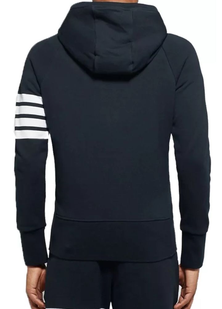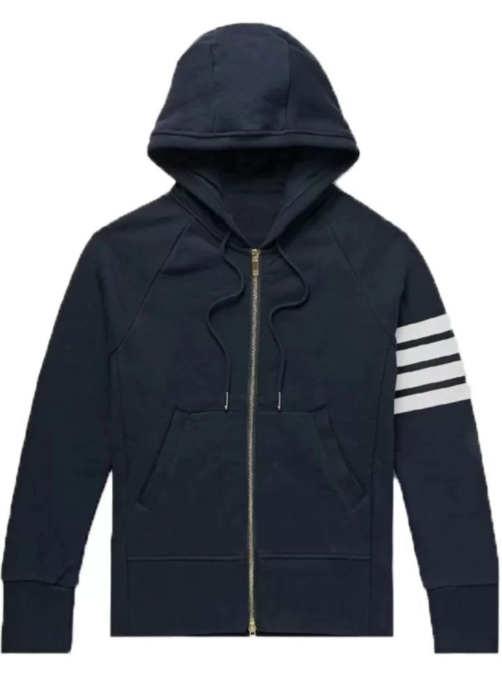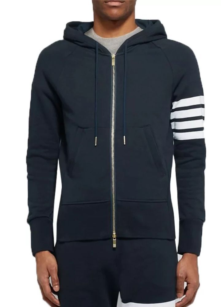 Welcome to the White Stripped Slim Fit Blue Men’s Hoodie, an epitome of style with comfort. This plush hoodie made up of fleece is warm and soft with an all-day fit. Viscountlined, it’s meant to keep you warm with the added hooded collar to keep the elements at bay. Front zippers ease into the wear of this hoodie which has full-length sleeves. Rib-knitted cuffs hug tightly too. The two waist pockets make it more convenient and functional. Bold blue in color with smart white stripes, this slim fit hoodie is all set to be a modern wardrobe must-have.