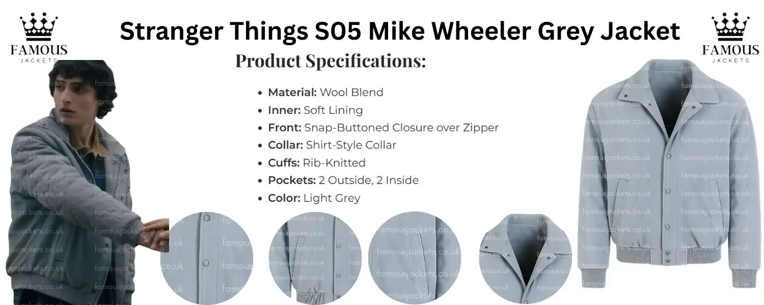Stranger Things S05 Mike Wheeler Finn Wolfhard Grey Bomber Jacket