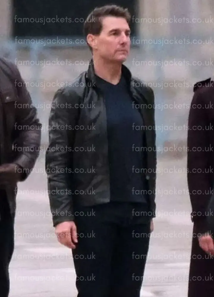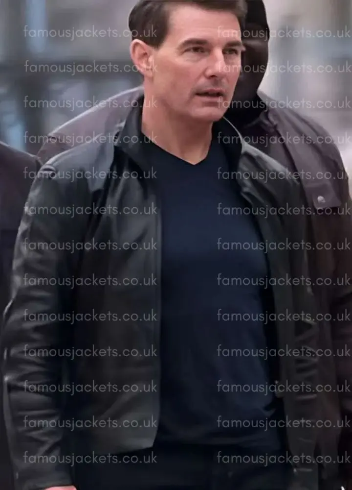 Ethan Hunt Mission Impossible Dead Reckoning Tom Cruise Black Leather Jacket