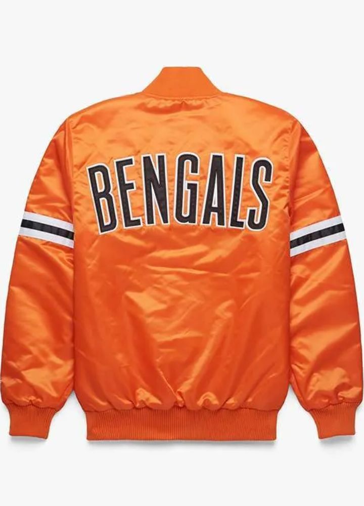 Introducing NFL Jacket, an ideal, stylish, and impressive homage to this legendary football team. It is of high-quality satin fabric finished durable but elegant, perfect for fan enthusiasts and fashion enthusiasts too. It is an open front jacket with buttoning closures at the front, therefore quite classy but easy to wear out. A rib-knitted collar provides a snug fit on the wearer, full-length sleeves with rib-knitted cuffs add warmth and provide a dignified silhouette. The bright orange color is bold and full of expression of team spirit. Two slant waist pockets outside and two inside provide ample space for holding important items while making the jacket streamlined. The soft viscose interior will not fade or lose comfort after a while. The premium Bengals jacket can only be cleaned in spots and dry cleaned every so often to maintain its bright color and smooth texture. With such uncomplicated care tips, this classic jacket can be an effective symbol of one’s loyalty to the Bengals.
