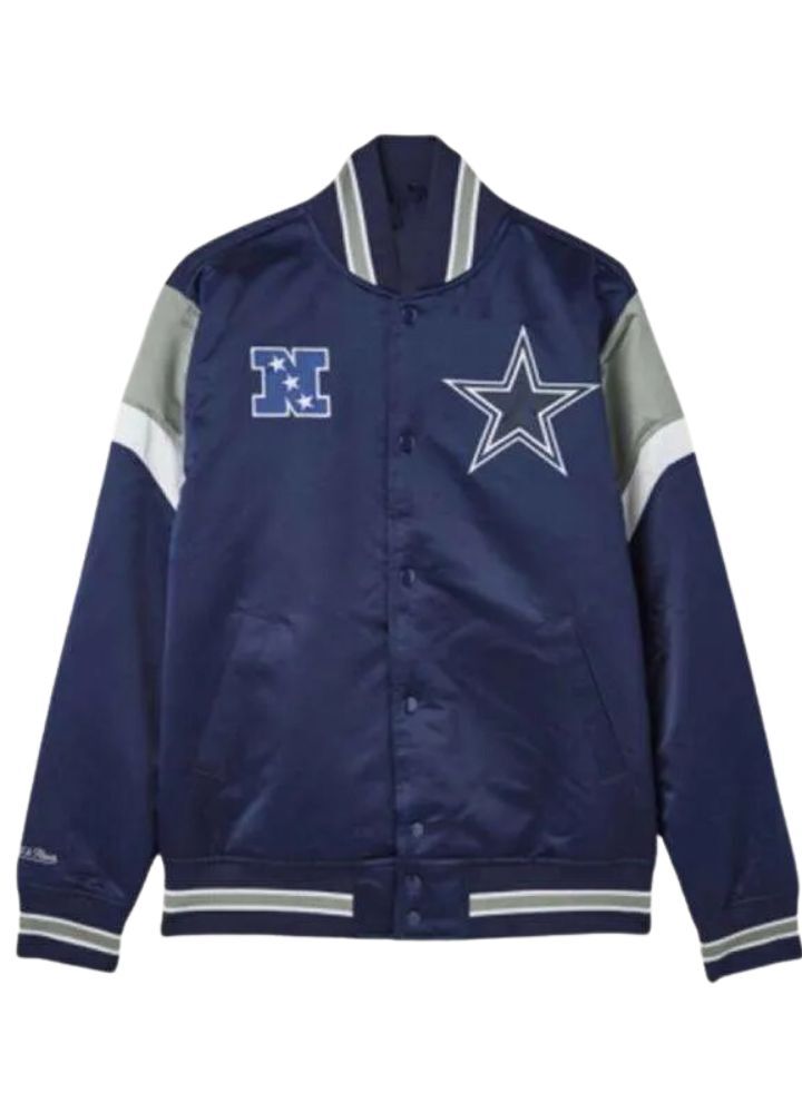 Introducing NFL Dallas Cowboys Jacket Style-Americans’ Team Tribute This satin-finish premium satin fabric allows the jacket to be one of the more fashion-forward and durable pieces. It’s ideal for a fan who likes fashion and functionality. Soft viscose inner lining ensures all-day comfort at the stadium, out with friends, or cheering from home. The classic varsity feel comes from a snap-tab button closure and rib-knitted collar, while long sleeves with rib-knitted cuffs add a slightly refined touch. It’s in iconic blue celebrating the Cowboys. This convenience-couture belt includes two outer and two inner pockets.
