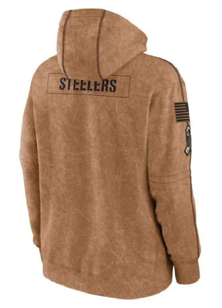 About the NFL Pittsburgh Steelers Salute to Brown Hoodie is the perfect, comfortable, stylish, and team pride on the part of the fans who value the quality and endurance that makes it a perfect choice to stay warm and cozy in the colder seasons. Full-length sleeves have ribbed cuffs for a snug fit while keeping the chill-out. The casual yet stress-free pullover style has a comfortable hooded collar. Rich brown in color endows this one with an air of sophistication, and on top of it rests the iconic Steelers logo proclaiming your identity. The front also comes with a roomy pouch pocket for carrying essentials or even taking warmth for your hands on game days