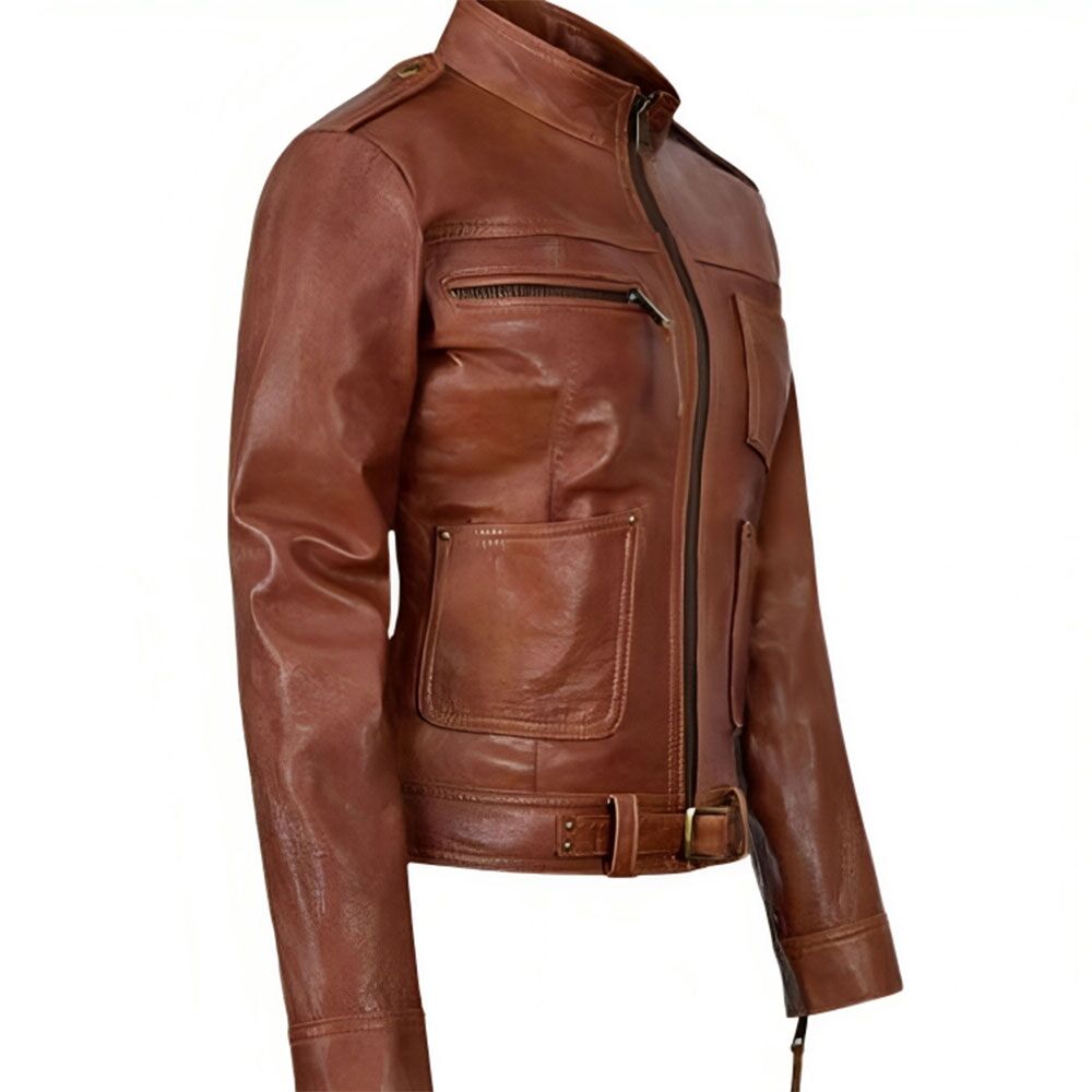 Jennifer Morrison’s “Once Upon A Time Jacket” is a fine jealousy compromise between sophistication and edge. When you choose from faux leather or real, this is the stylish, durable complement it offers individually. The versatile addition to your wardrobe comes with smooth, comfortable wearing for hours without a pinch courtesy of a viscose inner lining. That is a thoughtful co-addition to the style and the functionality of the jacket. As far as the structure of the jacket goes, the stand-up style collar lends it an extra touch of elegance, giving it a feel that is both classic and modern. Zipper cuffs are a much-praised part, adding an edginess to the look and making it possible for personalistic fitting and styling too. Again, the front zipper closure is practical, which enables you to wear the jacket as a style statement by defining a modern touch to it. Full Sleeves make it an ideal choice amongst women’s brown leather jackets since they give broader coverage, allowing warmth, and is therefore suitable for transitional weather as well as the cold season.