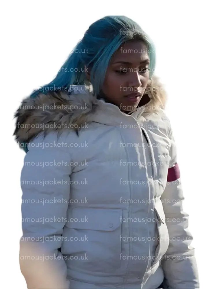 In the world of One Piece Season 2 which inspired us the One Piece S02 Charithra Chandran Miss Wednesday White Jacket brings movie set style to the street. As Charithra Chandran plays Miss Wednesday in her undercover capacities this icon white jacket personifies confidence, mystery and bold character energy. We see this great piece on her during her covert operations which for fans and fashion enthusiasts is a must have item. The Miss Wednesday White Jacket is made from high quality parachute fabric which is durable and has a smooth finish. It has a soft viscose lining for comfort, full length sleeves with round off styled buttons at the cuffs and a hooded collar which has a fur trim for that extra touch of elegance. The front zip with button closure gives a secure fit and also there are two outer and two inner pockets which are very practical. The clean white design goes the extra mile in terms of looking premium and stylish which makes it great for casual wear or cos play.