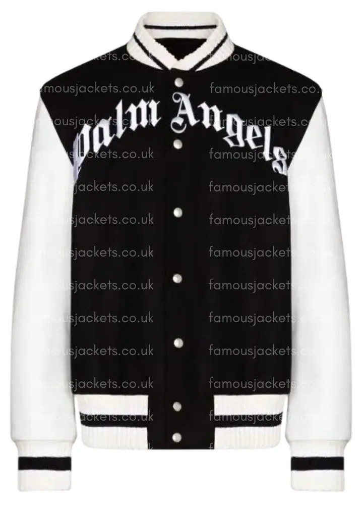 Step into the palm angels’ world of street style with the Palm Angels 50 Bear Varsity Jacket which brings together urban fashion with classic varsity elements. From the rebelling energy of high school sports movies and that which made American baseball great we get the inspiration for this jacket which is a must have for the modern man that wants to make a statement. Whether it is for a casual day out, a concert, or just a day in the city the Palm Angels 50 Bear Varsity Jacket is the choice for that perfect mix of style and comfort. With its bold black and white design and the trademark “50 Bear” emblem it is a hit with fashion enthusiasts and collectors. Also great for layering in the fall and spring this Palm Angels Baseball Jacket Cnfans takes you from the day to night look and will do the same for your outfit at a casual movie night.