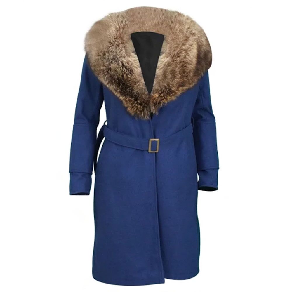 Peaky Blinders Season 5 Ada Shelby Fur Shawl Collar Blue Wool Coat