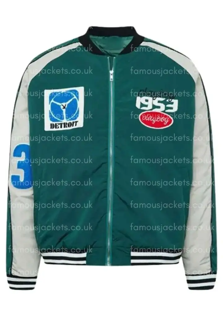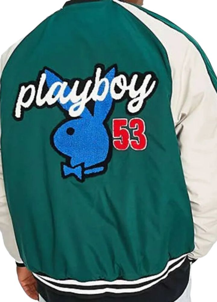 Introducing the Playboy Green Jacket, a classic piece combining classic design with modern comfort. The jacket is made from durable cotton and polyester fabric and comes with a soft viscose inner lining that feels smooth against the skin. The zipper closure provides for a secure fit, and the rib-knitted collar, cuffs, and waistband provide a stylish touch, giving the silhouette a fitted shape that’s both comfortable and fashionable. This jacket comes with full-length sleeves, which are warm and stretchable. The two outer and inner pockets may store all your necessary gear. This iconic varsity style would attract a lot of attention in almost any wardrobe for this striking color combination of green and white.