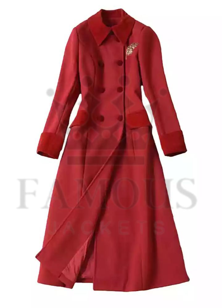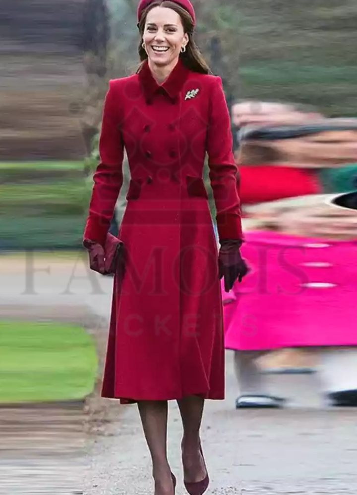Our Princess Kate Middleton Wool Coat This stunning red coat is made of soft wool blended with a synthetic fiber that is gentle on the skin and is not susceptible to shrinking. With a classic double-breasted button closure and notched lapel collar, you can rest assured this coat will never go out of style. Decorative flap pockets give it a little flourish. Inside, a plush inner lining creates a warm feel.